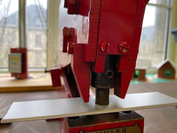 Ensuite, place aux machines pour percer un trou au centre de la pièce en PVC, puis poinçonner.